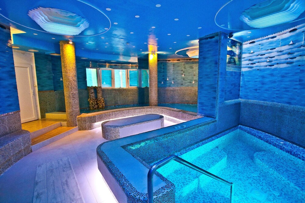 Large Indoor Pool Hotel Mosaic Tiles Green White Columns Indoor Pool Modern Pools Building A Pool